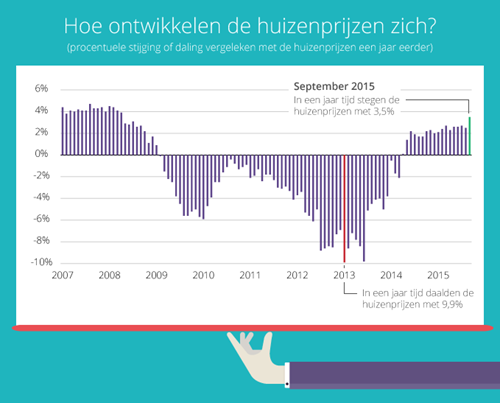 Het is sinds maart 2014 dat de jaar-op-jaar-ontwikkeling iedere maand in de plus zit. Dat was daarmee dan ook een optimaal moment voor wie een huis wilde kopen. Sinds dat moment zijn prijzen met 5,1% gestegen.