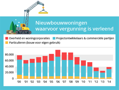 De aantrekkende huizenmarkt heeft er voor gezorgd dat ook de vraag naar nieuwbouwhuizen sterk is toegenomen. De hoge kortingen en gratis keukens die projectontwikkelaars tijdens de crisisperiode weggaven komen vrijwel niet meer voor. "De woningvoorraden zijn inmiddels opgedroogd", zei directeur van het Economisch Instituut voor de Bouw (EIB) Taco van Hoek daar in maart over.