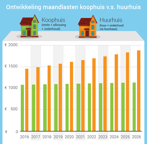 Koophuis: € 1.085 p.m. (incl. aflossing + onderhoud)