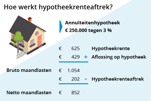 Als je voor het eerst een huis koopt, verandert er veel. Je kunt hypotheekrente en andere kosten opvoeren als aftrekpost. De hypotheekrente is je belangrijkste aftrekpost: je mag 30 jaar lang het bedrag dat je aan hypotheekrente betaalt aftrekken van je belastbare inkomen. Over dat bedrag betaal je dus geen belasting.