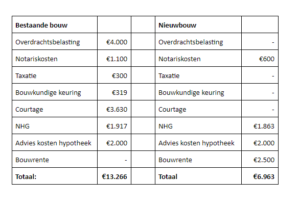 Bij bestaande bouw krijg je te maken met de zogenaamde ‘kosten koper’. Jij, als koper, draait op voor deze kosten: