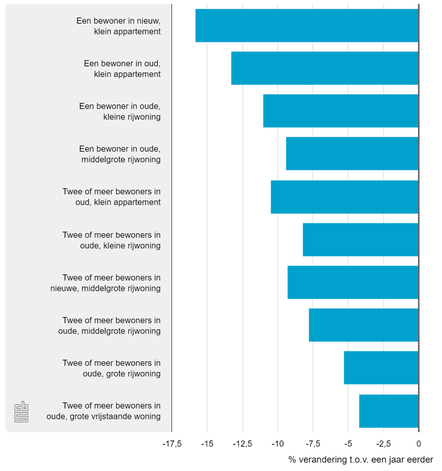 Door het verbruik gelijk te houden, kon het CBS berekenen of het verschil toe te schrijven is aan de tarieven voor energie. In de praktijk kan de rekening nog lager uitvallen gezien de zachte winter.