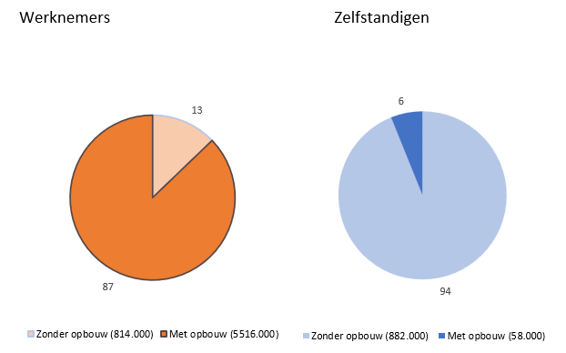 Ongeveer 1,7 miljoen Nederlanders hadden in 2020 wel een inkomen uit arbeid, maar bouwden geen pensioen op bij een pensioenfonds. Deze tweede pijler van het pensioenstelsel dient ter aanvulling op de AOW (eerste pijler). Doel is voorkomen van een (grote) terugval in inkomen na het bereiken van de pensioenleeftijd.
