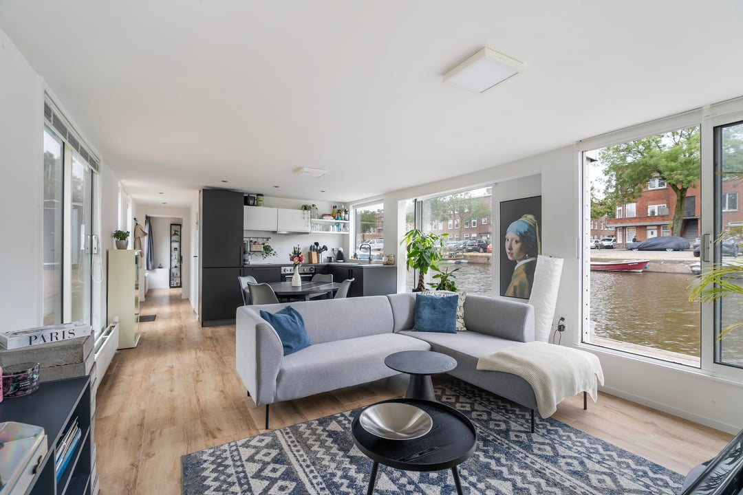 Een stijlvolle woonark met een ruim interieur, gelegen aan een brede waterweg in Den Haag. Moderne voorzieningen, goede bereikbaarheid, en de nabijheid van de stad maken deze woonboot een aantrekkelijke keuze.