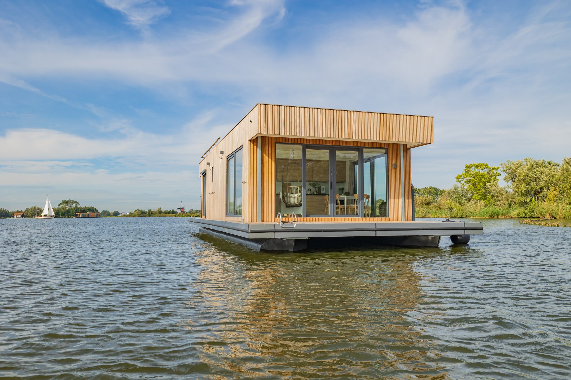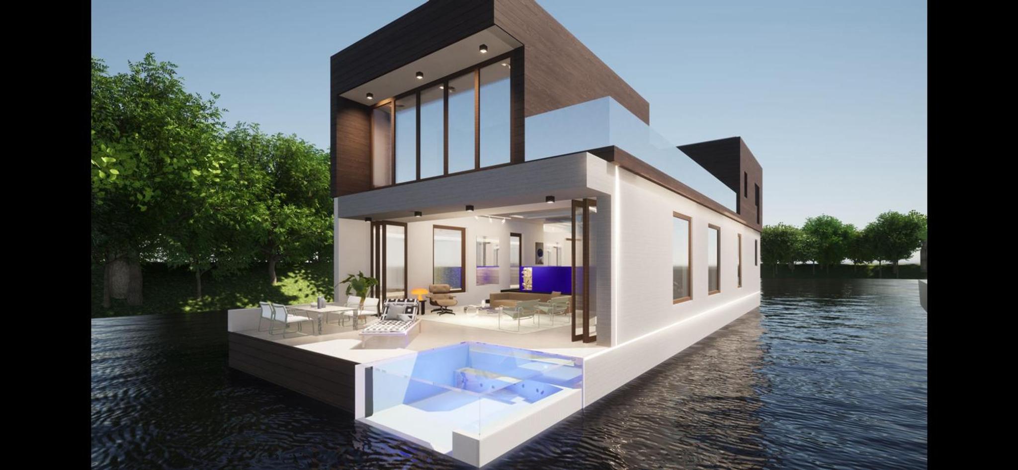 Deze moderne en energiezuinige woonboot ligt op een prachtige locatie in Kaag. Met een flexibel in te richten interieur, zonnepanelen, en een riant dakterras biedt de Surla Houseboat eigentijdse luxe midden op het water.